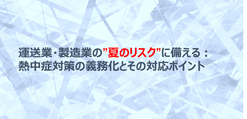 運送業・製造業の”夏のリスク”に備える:熱中症対策の義務化とその対応ポイント