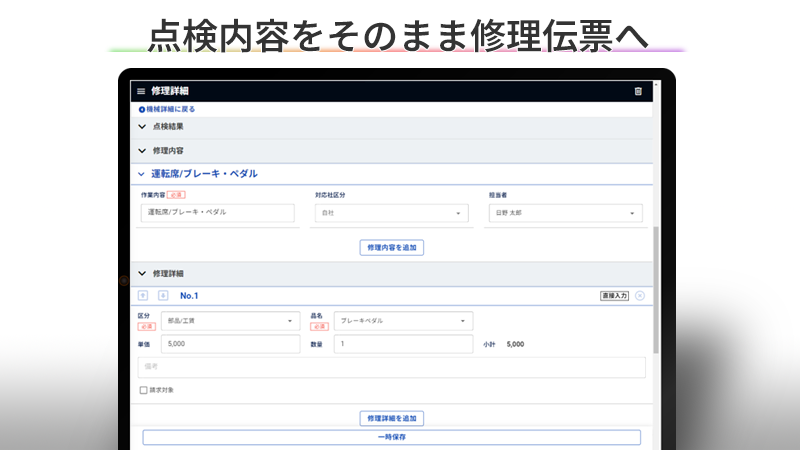 異常を発見した際は、点検記録から修理伝票を作成できます。